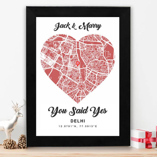 Personalized street map - Heart shape grey