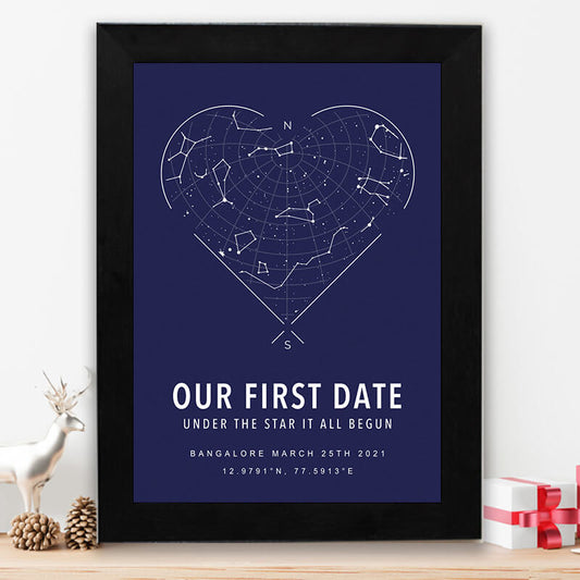 Personalized star map - Navy blue heart shape
